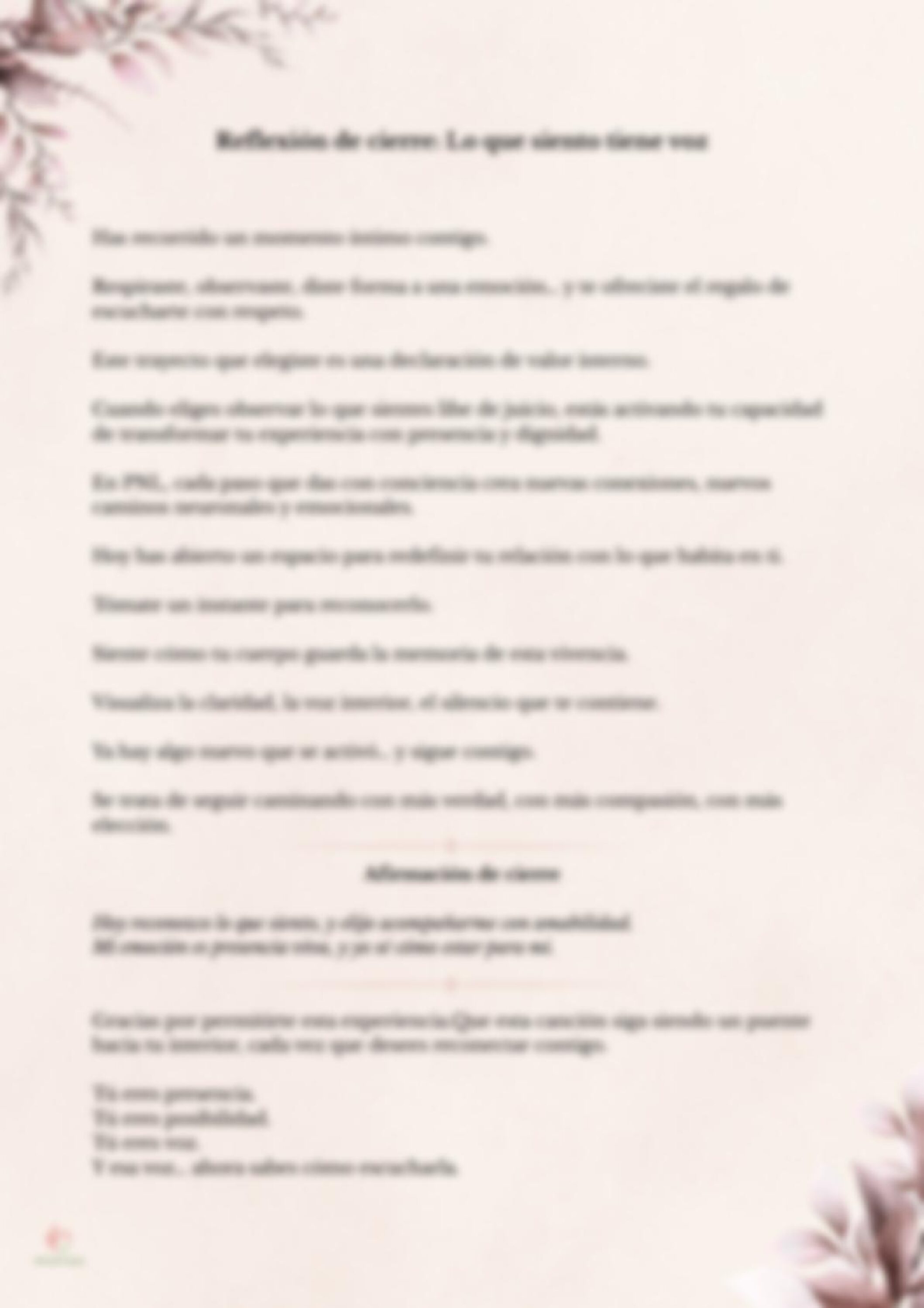 Escrita desde el enfoque de la Programación Neurolingüística (PNL), acompaña procesos de sanación sesiones o momentos de introspección personal.